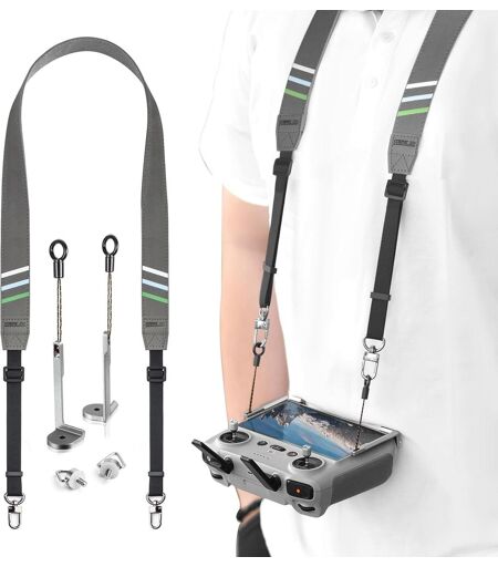 Wide Compatibility STARTRC Balance Lanyard est spécialement conçu pour les télécommandes RC 2 / RC/ RC Pro, compatible avec le drone Mini 5 Pro/Mini 4 Pro/Air 3S/Mini 3/Mini 3 Pro/Mavic 3, ce qui en fait un choix essentiel pour les amateurs de drones et les pilotes professionnels, libérant vos mains.Upgraded Balance lanyard Mini 5 pro Neck Strap with a vertical L-shaped 90° viewing angle, revolutionizes traditional designs, ensuring your screen remains facing upwards. Permet de voir sans effort l'écran du contrôleur et de fonctionner, que ce soit lors de longs vols ou d'opérations complexes.Suspension sans couture Balance Neck Strap bien ajusté et ne blessera pas l'écran de votre contrôleur.Ergonomiquement conçu pour assurer la visibilité de l'écran sans obstruction, permettant l'utilisation des joysticks et des boutons. La stabilité de la transmission du signal ne sera pas affectée.Dual-use DesignLanyard offre à la fois des modes de suspension à angle de vue vertical et de suspension à vis à main, conçus pour répondre à différents scénarios d'utilisation, que ce soit pour la photographie aérienne professionnelle, les aventures en plein air ou les démonstrations éducatives, en veillant à ce que vous trouviez une méthode de contrôle appropriée pour vous-même.Durable et fiableRC 2 Remote Controller Lanyard Fabriqué en alliage d'aluminium électroplaqué, possédant une dureté et une résistance élevées pour éviter l'oxydation et la rouille. Stable et sûr, résistant au détachement, longue durée de vie.Easy Installation and DisassemblyThis Strap equipped with quick-release buckles, requiring no tools for easy installation and fixation. Elle peut être rangée directement dans un étui étanche ou une mallette de transport sans être démontée, ce qui permet d'économiser de l'espace et du temps..La livraison depuis la France est prévue dans 5 jours ouvrés, n'hésitez pas à passer votre commande ...