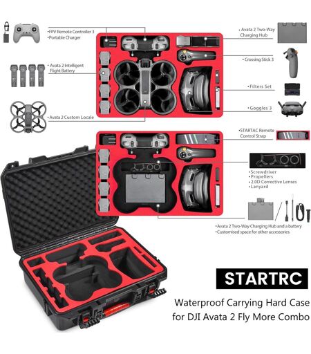 Design personnalisé pour DJI Avata 2 la coque rigide STARTRC est spécialement conçue pour DJI Avata 2 Fly More Combo avec télécommande DJI FPV 3 et autres accessoires.Grande capacité de stockage pour tous vos besoins 1 drone Avata 2, 8 batteries (7 batteries supplémentaires), 1 paire de lunettes, 3 télécommandes, 1 télécommande FPV, 3 concentrateurs de charge, 1 chargeur 65 W, 3 batteries, hélices, câbles, filtres. et autres accessoires. Notre grand étui a assez d'espace pour votre expérience de vol sans faille.Étanchéité IP67 avec un indice IP67, cette coque rigide étanche est équipée d'une valve de pression de haute qualité et d'un joint torique étanche. Gardez votre précieux drone Avata 2 et ses accessoires au sec grâce à sa haute performance d'étanchéité. Que vous soyez pris sous la pluie ou en rivière ou en mer.Protection complète fabriquée en ABS et doublure en EVA, cette coque est à la fois résistante aux chocs, aux chocs et aux rayures, assurant que votre drone reste à l'abri des chocs et des contusions. Inserts intérieurs en mousse entièrement personnalisables assurant un rangement bien organisé, ce qui le rend facile à trouver tout ce dont vous avez besoin. La protection multicouche assure un transport et un stockage sûrs de votre drone Avata 2 pendant les voyages ou la conduite.Bandoulière pour un voyage facile doté d'une bandoulière personnalisée confortable, avec une poignée ergonomique recouverte de caoutchouc. Elle peut permettre un transport sans effort, ce qui la rend idéale pour les activités de plein air comme la randonnée et le camping où vous pouvez profiter du frisson du vol à tout moment, n'importe où. Contenu 1 coque rigide Start pour DJI Avata 2, 1 bandoulière personnalisée (drone et autres accessoires non inclus)..La livraison depuis la France est prévue dans 5 jours ouvrés, n'hésitez pas à passer votre commande ...