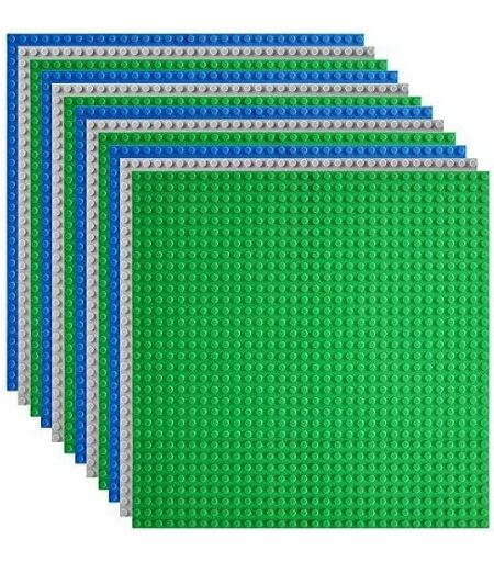 YOUY-Lot De 12 Plaques De Construction Compatibles Avec La Plupart Des Marques,25 X 25 Cm,Plaque De Base Verte,Bleue,Grise,Vert/Gris/Bleu