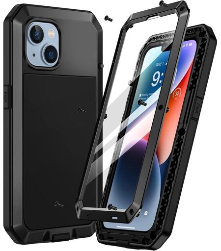 Jakn-Coque Pour Iphone 14 Plus,[Antichoc & Renforcé][Metallique] Incassable Solide Blindé Coque 360 Degré Full Body Heavy Duty Metal Protection Case Avec Du Verre Trempé,Noir