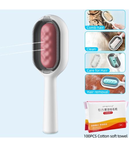 Brosse De Toilettage 4 En 1 Pour Animaux De Compagnie,Livres,Massage,Peigne Dissolvant Pour Chat Et Chien,Fournitures Générales Avec Eau,Produits Précieux Pour Animaux De - Type Pink Set With Wipes
