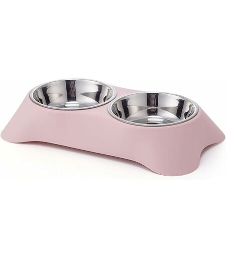 ERSANDY Bol double pour chien, bol double en acier inoxydable antidérapant avec anti-déversement pour petits chiens et chats (S, rose)