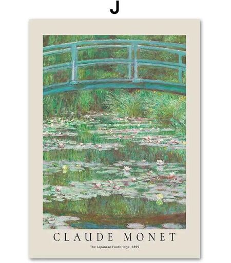 Art Mural Vintage Classique Scandinave,Claude Monet,Abstrait Hd,Affiche En Toile Imprimée,Décoration De Maison,Chambre À Coucher,Salon - Type J-50x70 Cm Unframed