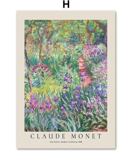 Art Mural Vintage Classique Scandinave,Claude Monet,Abstrait Hd,Affiche En Toile Imprimée,Décoration De Maison,Chambre À Coucher,Salon - Type H-50x70 Cm Unframed