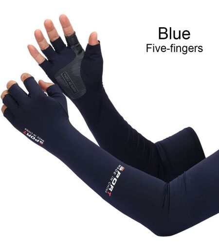 Manchons De Bras De Glace Respirants À Cinq Doigts,1 Paire,Manchettes De Protection Contre Le Soleil,Sport De Plein Air,Équitation,Course,En Soie Fraîche - Type Blue-Five-Fingers