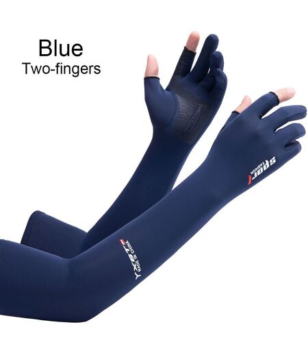 Manchons De Bras De Glace Respirants À Cinq Doigts,1 Paire,Manchettes De Protection Contre Le Soleil,Sport De Plein Air,Équitation,Course,En Soie Fraîche - Type Blue-Two-Fingers