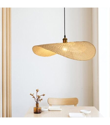 LITZEE Suspension En Bambou Rotin Tissé Loft Pays Lustre Chapeau Lampe Suspendue Réglable En Hauteur Éclairage Chambre Éclairage Pendentif Lumière Salle