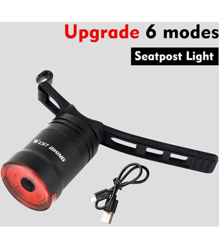 Tige De Selle Légère A - Ouest Vélo Imperméable À L'eau Vélo Feu Arrière Intelligent Rechargeable D'usb De Sécurité D'avertissement De Bicyclette Lumières Intelligent Led Support Cyclisme De Nuit Lampe