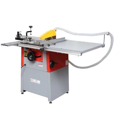 Scie circulaire de facile utilisation, idéale pour l´initiation dans les travails du bois. Robuste, précise et de réduites dimensions. Table en fonte gris. Capacité de coupe de lame a guide de 750 mm avec rallonge. Volants extérieurs pour réglage en hauteur et inclinaison. Dimensions machine montée : 1350 x 1765 mm Livrée avec: Lame TCT Ø 254mm, chariot aluminium, guide de précision, presseur excentrique, rallonge. Caractéristiques techniques : Poids net en kg : 122 Puissance moteur S1 W : 2200 Voltage : 400V / 50Hz Vitesse d'avancement : 4000 Dimensions machine en mm : 100 / 25 ...