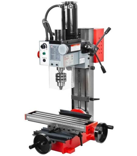 Description générale La perceuse fraiseuse BF16V est conçue pour le perçage et le fraisage de petites pièces. Sa construction compacte assure un fonctionnement stable et sans vibrations, idéal pour les modélistes et les bricoleurs exigeants. Elle est équipée d'une table en croix de qualité avec échelle, d'une tête d'engrenage rotative et d'un volant pour un perçage de précision. Spécifications techniques Tension : 230V / 50 Hz Puissance du moteur : 350 W Déplacement (X/Y) : 220/100 mm Axe vertical (Z) : 180 mm Capacité de perçage dans l'acier : 13 mm Foret max. : 16 mm Fraise max. : 30 mm Mandrin : 3-13 mm Vitesse de broche : 0-1100 tr/min (L) et 0-2500 tr/min (H) Distance broche-table : 60-275 mm Inclinaison de la tête de forage : -40 ° à +45 ° Dimensions de la machine : 520 x 510 x 760 mm Poids net : 50 kg Poids brut : 68 kg Compatibilité et accessoires Livrée avec mandrin 3-13 mm Outils de montage inclus Installation La machine doit être installée sur un support stable, tel qu'un ...