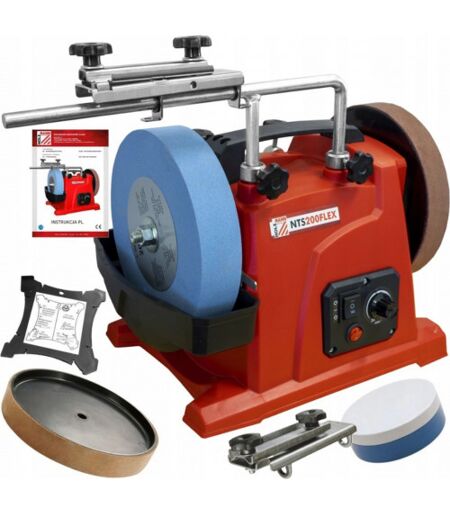 La ponceuse a eau Holzmann NTS200FLEX, d'une puissance de 120 W et d'un poids de 7,8 kg, est conçue pour affuter facilement et précisément une variété d'outils de coupe tels que les couteaux, ciseaux, haches et outils de tournage. Grâce a sa meule en corindon de haute qualité, elle garantit un affutage efficace tout en prévenant la surchauffe grâce a son réservoir d'eau amovible. Spécifications techniques • Puissance : 120 W • Tension : 230 V / 50 Hz • Poids : 8,7 kg • Dimensions : 450 x 260 x 380 mm • Vitesse de rotation : 30-150 min-1 • Niveau de pression acoustique : 78,5 dB(A) • Niveau de puissance acoustique : 91,5 dB(A) • Classe de protection : IP23 • Longueur du câble : 2 m • Dimensions de la meule : O200 x 40 x 12 mm • Dimensions du disque en cuir : O200 x 30 x 12,5 mm Compatibilité et accessoires • Support universel micro-réglable pour un affutage de précision • Pierre a aiguiser en corindon K 220 • Disque a aiguiser en cuir • Réservoir d'eau amovible • Gabarit d'angle • Pâte de polissage> ...