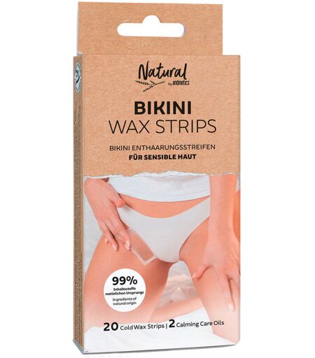 NATURAL BIKINI : Les nouveaux produits "NATURAL by andmetics" sont composés à 99% d'ingrédients naturels & conviennent spécialement aux peaux sensibles. Toute la gamme est exempte de polyéthylène & de paraffine. Toutes les applications de cire froide d'épilation peuvent continuer à être effectuées à domicile et sont simples & sûres à utiliser. Les bandes de cire NATURAL by andmetics BIKINI wax strips pour la zone sensible du bikini éliminent tous les poils gênants en quelques minutes. Les bandes sont plus petites que les bandes d'épilation corporelles traditionnelles et conviennent donc parfaitement à la zone du bikini. Elles permettent ainsi une épilation précise - sans irriter les zones inutiles. Les bandes sont livrées "prêtes à l'emploi" - il n'est pas nécessaire de les réchauffer et elles sont immédiatement prêtes à l'emploi. Contenu : 20 pcs. bandes pour le bikini + 2 pcs. Huile de soin Parfaitement adapté à la zone intimeÉlimine les poils à la racineLes poils gênants appartiennent au passéPeau lisse jusqu'à 4 semainesPour tous les types de peauVégétalien ...
