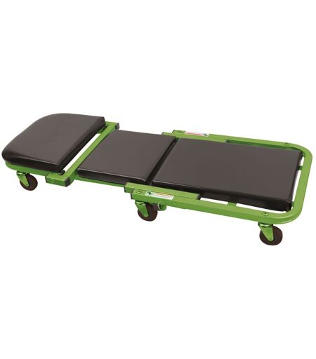 Etudié pour garagistes Entièrement recouvert de coussins cuir 6 grandes roues de diamètre 7 cm multidirectionnelles avec bande de roulement équipées de butyl anti choc pour amortir les défauts du sol Convertible instantanément en tabouret de visite ...