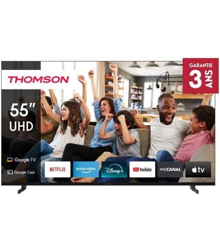 Découvrez la Smart TV Thomson 55UG4S14, une télévision 4K UHD de 55 pouces (139 cm) offrant une qualité d'image exceptionnelle. Équipée de Google TV, Dolby Audio et Dolby Atmos, elle propose une connectivité complete avec 4 ports HDMI et 3 ports USB. Son design élégant et ses fonctionnalités avancées comme HDR10 et Google Assistant en font un choix idéal pour votre salon. ...