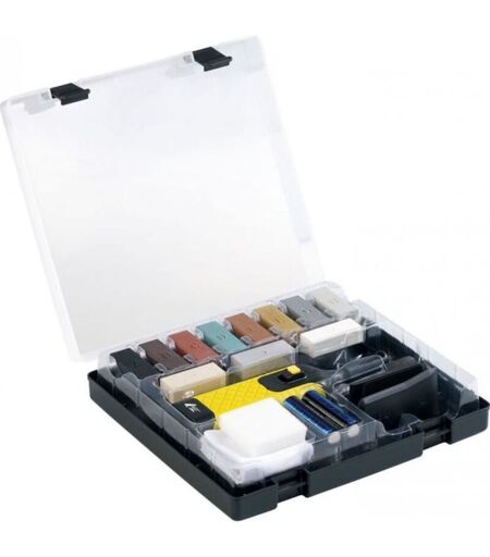 Kit de réparation AGT Peut aussi être utilisé sur de la faïence, des pots de fleur et de la céramique Solution aux rayures, marques et empreintes légères ou plus profondes Ajustable selon vos besoins : 11 couleurs de bâtons de cire Dans une malle Référence:4022107235952 Utilisation:Intérieur Catégorie:CARRELAGE - PAREMENT Nom du produit:Kit de réparation pour dalles & carreaux ...