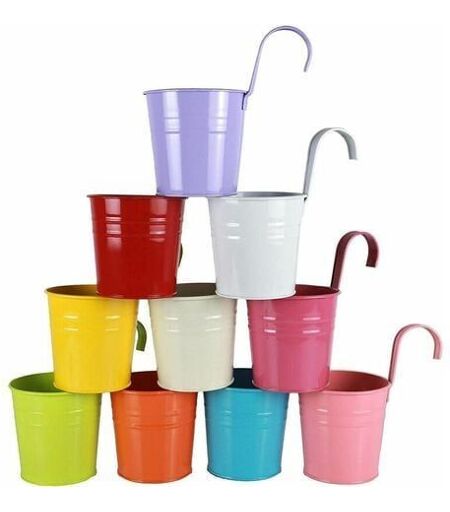 10 Pièces Pot De Fleur Suspendu Colorés En Métal Jardiniere Accroche Balcon À Suspendre Fer Avec Crochet Panier À Planter Décoration Clôture Jardin Balcon Mural Rambarde Patio Extérieur Zhuoxuan