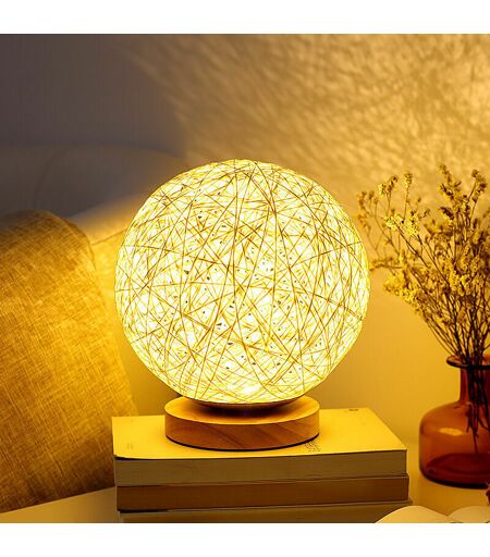 [ SÛR ET ÉCONOMIE D'ÉNERGIE] : Port de charge DC 5V, veilleuse peu encombrante, adaptée à tout style de décoration. Alimentation USB améliorée, faible consommation d'énergie et protection de l'environnement. Installation et retrait pratiques [MATÉRIAUX DE HAUTE QUALITÉ] : Le corps de la lampe est en rotin naturel de haute qualité, d'aspect lisse, sûr et sans goût. La base en bois est solide et durable, pas facile à tomber. Abat-jour en lin avec base en bois massif, style chic et atmosphère élégante [CRÉEZ UNE ATMOSPHÈRE ROMANTIQUE] : L'éclairage chaleureux et doux crée une beauté calme et naturelle, et la lumière douce vous fait vous sentir détendu et paisible. Design rétro nostalgique, vous permet de vous souvenir des moments beaux et merveilleux [CADEAU PARFAIT] : La veilleuse sphérique tissée a une apparence originale et unique. Cette lumière d'ambiance est très adaptée pour offrir des cadeaux aux enfants, à la famille, aux amis, notamment pour Noël, anniversaires ou fêtes, etc. [ ...