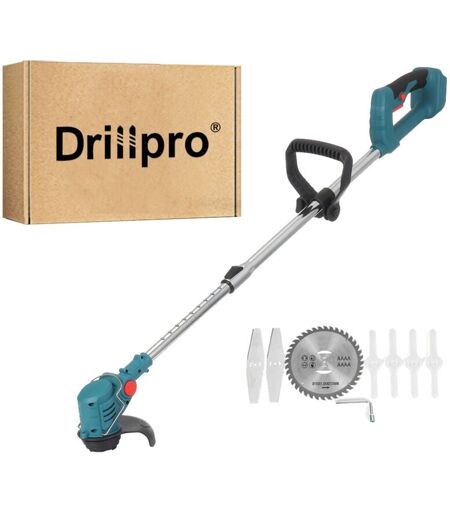 DRILLPRO Coupe bordure à batterie sans fil Tête de Coupe rotative Coupe herbe Tondeuse électrique 21V 450W 12000r/min L.99-135 cm ajustable (sans