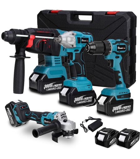 Insma - Set de 4 Clé électrique + Meuleuse d'angle + Perceuse électrique + Perforateur électrique 2 batteries Fantablau