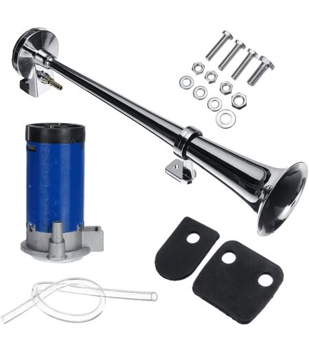 Emballage inclus: 【Choose1】 1 x pompe bleue 【Choose2】 1 x trompette 1 x tuyau 1 x pompe Certains accessoires comme image Spécifications: Type de corne: trompette simple Matériau: alliage de zinc chromé (non rouillé) et ABS Couleur: Argent Tension: 12V Sortie DB: 600db Dimensions: 16.9''L x 3.5''W x 3. '' H Caractéristiques: 1. Super fort Sortie sonore 600 dB, trompette unique. 2. Dur, résistant, garantit une longue durée de vie. 3. Il convient aux voitures, camions, bateaux et tous les types de motos 4. Suffisamment fort pour vous aider à prévenir les personnes qui ne sont pas au courant de l'arrivée de votre voiture. 5. Accessoires complètement, une installation professionnelle est nécessaire. Montage: Convient aux voitures, camions, bateaux et tous les types de motos ...
