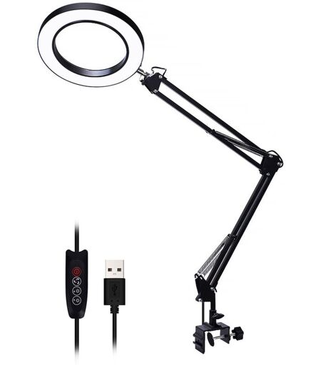 MAEREX Loupe flexible 5X usb led 3 couleurs illumin¨e pour Bureau Lecture R¨usinage Soudure Jmax