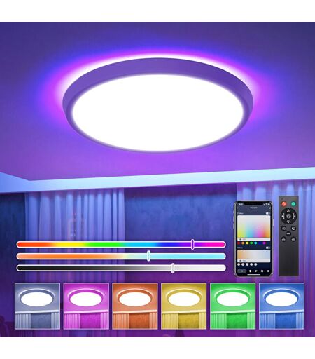 Fonctionnalité: - Télécommande APP - Luminosité et température de couleur réglables - Rétroéclairage RVB atmosphérique - Mode scène bricolage et synchronisation musicale - Mode réveil / Veille - Commande vocale avec Alexa - Lumière principale et lumière d'ambiance RVB La conception 2 en 1 crée des niveaux d'éclairage plus abondants .-Lumière principale et lumière d'ambiance RVB La conception 2 en 1 crée des niveaux d'éclairage plus abondants.Lumière allumée simultanément.Lumière principale s'allume.Lumière d'ambiance s'allume.42 perles de lampe RVB.Créez une ambiance magnifique avec 16 millions de couleurs.-3,2700-6500K Température réglable.2200l lm, Ra ≥ 80, la lumière est douce et non éblouissante.Blanc chaud / Lumière neutre / Blanc lumière du jour-4.APP Télécommande Vous permet de régler les lumières lorsque vous vous allongez au lit ou lorsque vous partez.-En option et Mode Scène DIY Ajustez-le en fonction de votre environnement ou de votre activité.-Mode veille et réveil ...