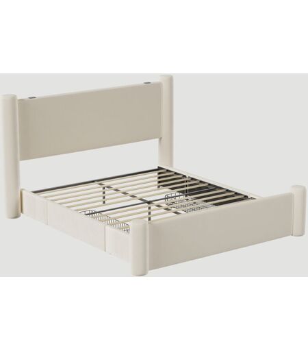 Concept Usine - 160x200 cm Cadre de lit double beige avec tête de lit rembourrée au design colonne 3D avec 2 tiroirs de rangement et port usb
