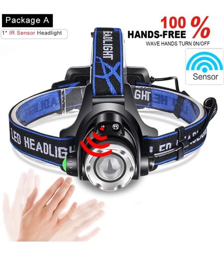 Xp-L V6-15000lm - Lampe Frontale Étanche Avec Capteur Montion , Fonction Zoom, Idéale Pour Le Camping, 15 000lm