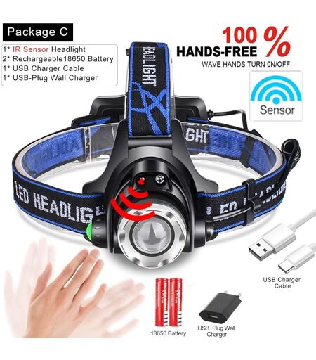 Xp-L V6-15000lm - Lampe Frontale À Led Avec Capteur De Mouvement Corporel, 8000 Lm,Zoomable, Lampe Torche, Lanterne Pour Camping