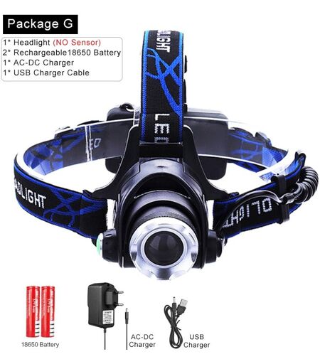 Xp-L V6-15000lm - Lampe Frontale À Led Avec Capteur De Mouvement Corporel, Zoomable,Lampe Torche, Lanterne Pour Camping, 7000 Lm
