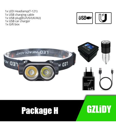 Emballage H - Lampe Frontale À Led Xpe, Alimentée Par Usb, Rechargeable, Imperméable, Très Lumineuse, Avec Aimant, Idéale Pour La Pêche