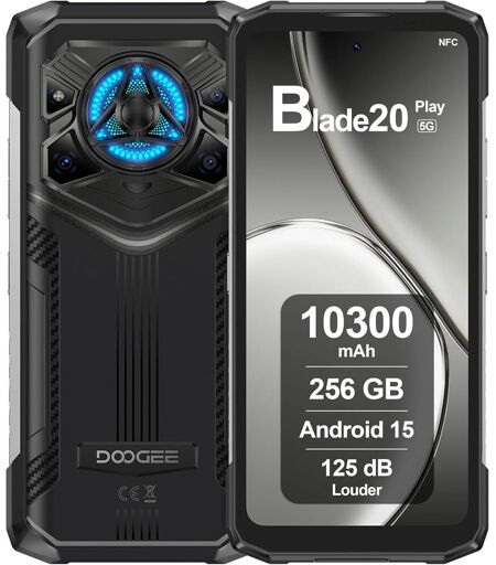 **Expedition depuis la France et l'Allemagne : Preparation de la commande sous 2 jours, Delai de livraison estime entre 3 et 5 jours.** Les Points Forts: -¡¿Gemini AI¡¿ Le Blade 20 Play telephone portable incassable integre la technologie Gemini AI pour des questions-reponses intelligentes, des interactions vocales, des conversations en temps reel, le reveil vocal, une assistance intelligente en plein ecran, etc. Il peut enregistrer et reconna?tre votre voix, donner des commandes et contr?ler votre telephone ¿¿ l'aide de votre voix. Il peut generer des images correspondantes ¿¿ partir de descriptions textuelles, convertir du texte en discours naturel et fluide, et aider les developpeurs ¿¿ ecrire rapidement des programmes, deboguer du code, etc. -¡¿Haut-parleur Puissant de 125 dB & Lumieres Interactives Intelligentes¡¿Le DOOGEE Blade 20 Play 5G telephone portable incassable offre des performances audio impressionnantes grace ¿¿ son puissant haut-parleur ultrasonique de 3,5 W. Le volume des appels peut ¿ºtre augmente jusqu'¿¿ 125 decibels, garantissant une sortie audio claire m¿ºme dans des environnements bruyants. Le smartphone incassable Blade 20 Play est equipe d'un eclairage interactif intelligent, avec des effets LED rouges, bleus et verts specialement con?us qui peuvent ¿ºtre personnalises pour differents scenarios, tels que les appels entrants, la lecture de musique, les notifications de messages et l'etat de charge. -¡¿5G Dimensity 7050 & Android 15¡¿ Dote du dernier Android 15, Le smartphone Incassable 5G offre une vitesse et des performances inegalees, vous permettant de naviguer sans effort dans les applications, les jeux et le multimedia. Le DOOGEE Blade 20 Play telephone portable incassable est equipe d'un puissant processeur 5G Dimensity 7050 qui vous permet d'accomplir vos taches en toute simplicite. -¡¿10300mAh Battery + 33W Fast Charger¡¿DOOGEE Blade 20 Play telephone portable Incassable dispose d'une batterie de 10300mAh qui prend en charge 15 heures de veille prolongee, 14.5 heures de musique et 31 heures de conversation. Ce telephone Incassable est egalement equipe d'un chargeur rapide de 33W, qui peut facilement repondre ¿¿ vos besoins quotidiens de travail et de jeu. -¡¿32 Go RAM + 256 Go ROM + TF Jusqu'¿¿ 2TB¡¿DOOGEE Blade 20 Play offre une experience inegalee. telephone portable incassable Profitez d'un multitache fluide et d'un fonctionnement ininterrompu.Avec 32 Go de RAM (8 Go de memoire de base + jusqu'¿¿ 24 Go de memoire extensible) et 256 Go de ROM, l'espace de stockage est amplement suffisant. Ce smartphone incassable vous offre un vaste espace de stockage avec un melange parfait de performances et de capacite de stockage. ¡¿Camera AI 50MP + 16MP & Face ID & NFC & WIFI6¡¿Le Blade 20 Play telephone incassable l'appareil photo de 50 MP offre de superbes images aux couleurs eclatantes et aux details nets, tandis que l'appareil photo de 16 MP fournit des photos precises et claires pour tous vos besoins en matiere de... ...