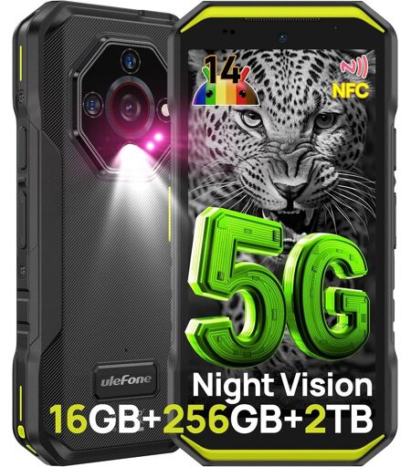 Ulefone Armor X32 Pro 5G Incassable 16 Go + 256 Go / 2 To Android 14 Smartphone 5500mAh 64MP 5,65" 3-Slots/Flashlight/OTG/NFC Vert