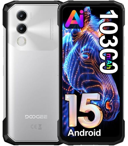 DOOGEE Blade 20 Incassable Android 15 10300 mAh/18W 20 Go + 128 Go / 2 To 4G 6.6" HD 3 Fentes pour Cartes/NFC - Argent
