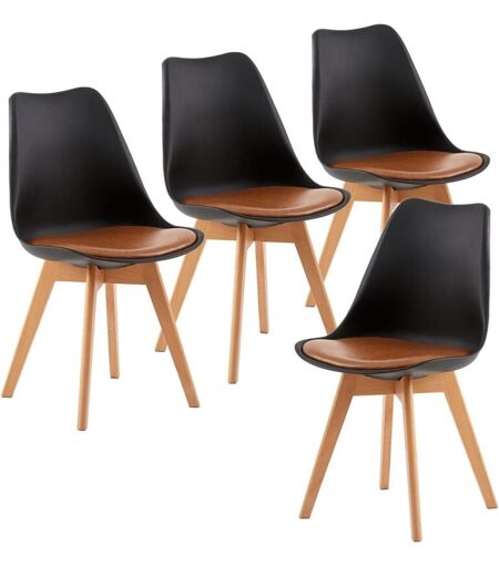 H.J WEDOO Lot de 4 Chaises de Salle à Manger Scandinaves, Chaises de Cuisine Classique avec Coussin en Cuir Marron & Bois de Hêtre Massif, Noir & Marron - H.j