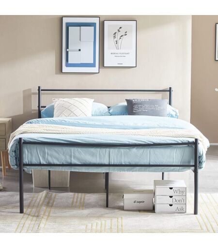 H.j Wedoo - Cadre de lit Double 140 x 190 cm Sommier Support à Lattes en métal Rangement sous Le lit Noir