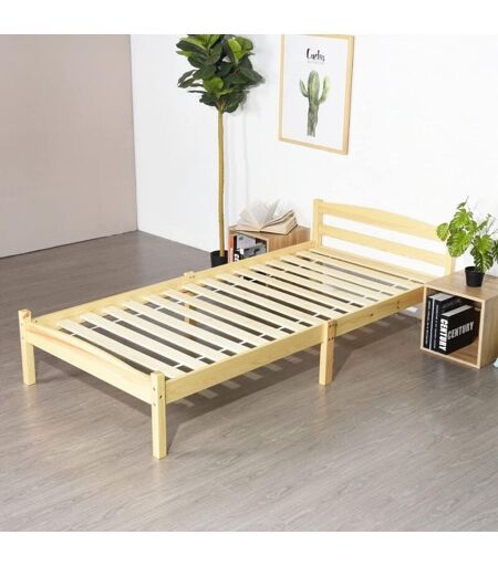 H.j Wedoo - Lit Simple Cadre de Lit en Bois Massif, avec Sommier à Lattes, Grand Espace de Rangement sous Le Lit, Adapté aux Adultes Enfants et