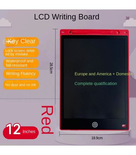 Découvrez notre tableau de dessin électronique de 12 pouces, idéal pour stimuler la créativité des enfants ! Ce tableau à écran LCD permet une écriture fluide et des dessins colorés, offrant une expérience de dessin agréable et sans désordre. Sa couleur rouge vive attire l'attention des petits artistes. Léger et portable, il devient l'outil parfait pour des activités à la maison ou en extérieur. Équipé d'un stylo monochrome, il facilite l'apprentissage et le développement des compétences artistiques. Offrez à votre enfant un support où il peut laisser libre cours à son imagination sans limites ! ...