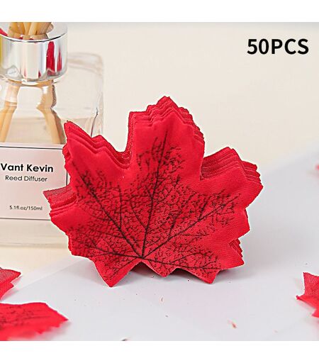 Feuilles D'érable Artificielles D'automne,50 À 200 Pièces,Fausses Feuilles En Soie,Pour Fête De Mariage,Thanksgiving,Halloween,Décor De Festival,Accessoires De Photographie - Type Red-200pcs