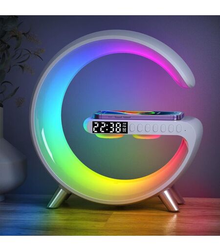 Groofoo - Lampe de Table Intelligente avec Chargeur sans Fil, Haut-Parleur Bluetooth, Veilleuse rvb et Contrôle d'App - Ambiance Multifonctionnelle