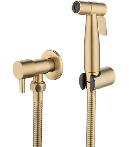 【Matériau de haute qualité】Le corps principal est fait d'acier inoxydable 304, qui est sans plomb, respectueux de l'environnement et durable.La surface est brossée avec le processus d'or, l'apparence simple et élégante avec un sentiment de haute qualité, et le placage n'est pas facile à tomber. Il n'est pas facile de se corroder dans un environnement humide, et la surface est brillante et durable. 【Bidet sprayer】Strongely pressurized water discharge, smooth water discharge and strong cleaning force.It is cleaner and more convenient than cleaning with toilet paper ! 【Fonctionnement lisse sans fuite】Adopte une valve céramique de précision à haute dureté pour assurer un fonctionnement lisse et durable de la poignée.Le fonctionnement lisse et l'économie de main-d'œuvre garantissent que le robinet goutte sans fuite.Dans le même temps, la résistance à la température élevée, la performance stable. 【Accessoires】 Interface universelle à quatre points ; tuyau de 1,5 m en acier inoxydable. Tube ...