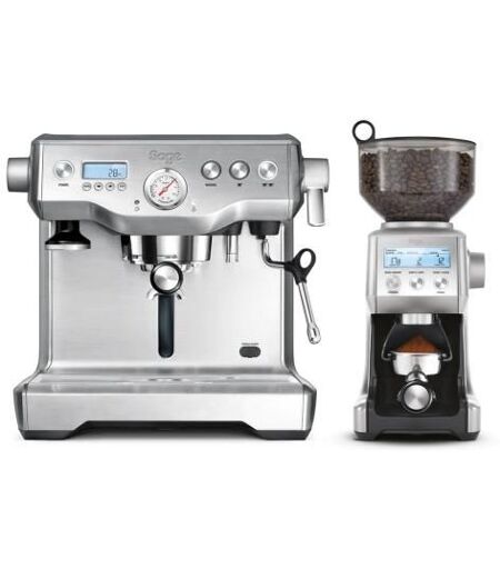 Sage the Dynamic Duo. Type de produit: Machine à expresso, Type de cafetière: Semi-automatique, Capacité du réservoir d'eau: 2,5 L, Type d'entrée à café: Café en grains, Réservoir de café: Tasse, Capacité en tasses: 2 tasses. Type d'écran: LCD. Puissance: 2200 W. Couleur du produit: Acier inoxydable ...