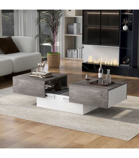 Redom - Table basse, table de canapé, table basse, table d'appoint, table de salon (avec table extensible et espace de rangement, 2 tiroirs et 2