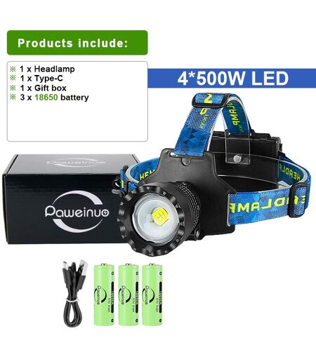Lampe Frontale Portable Super Brillante À 4 C?urs,2024 W,Led 500,Rechargeable,Étanche,Zoom,Lanterne Pour Camping Et Pêche,18650 - Type 500w B-Box #A