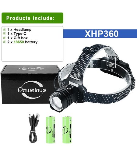 Lampe Frontale Portable Super Brillante À 4 C?urs,2024 W,Led 500,Rechargeable,Étanche,Zoom,Lanterne Pour Camping Et Pêche,18650 - Type Xhp360 B-Box #A