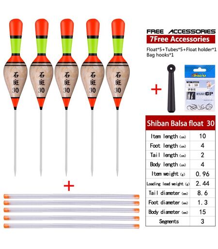 Flotteurs De Pêche Avec 1 Tube De Flotteur,1 Porte-Bouée Et 1 Sac D'hameçons,Bouée En Eau Peu Profonde,Queue Optique,Matériel De Pêche Vertical Boya,5 Pièces - Type Sb-Sm-Cw 30