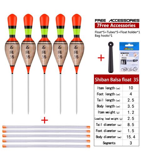 Flotteurs De Pêche Avec 1 Tube De Flotteur,1 Porte-Bouée Et 1 Sac D'hameçons,Bouée En Eau Peu Profonde,Queue Optique,Matériel De Pêche Vertical Boya,5 Pièces - Type Sb-Sm-Cw 35