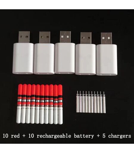 Bâtons Lumineux Vert/Rouge Avec Batterie Cr322,10 Pièces,Lampe Led Étanche,Accessoire De Pêche De Nuit,J466 - Type Red And 5 Charger