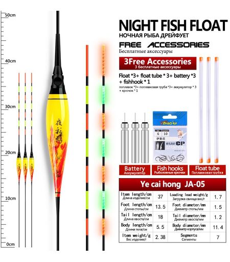 Flotteurs De Pêche Électriques Characterelectric,3 Pièces Gonflées,3 Pièces De Tube De Flotteur,1 Sac De Crochets,Shoous Boya,Bouy D'eau Douce,Accessoires De Pêche De Nuit - Type Ych-02 Ja-05