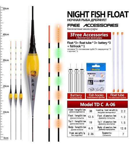 Flotteurs De Pêche Électriques Characterelectric,3 Pièces Gonflées,3 Pièces De Tube De Flotteur,1 Sac De Crochets,Shoous Boya,Bouy D'eau Douce,Accessoires De Pêche De Nuit - Type Td-C A-06